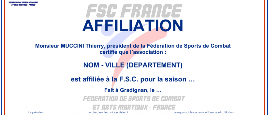 · Condition principale pour affilier : L'enseignant principal du club (ou le coach) doit être titulaire d'un diplôme de la discipline ou du groupe de discipline proches (brevet du 2é degré : BF2° ou DIF).