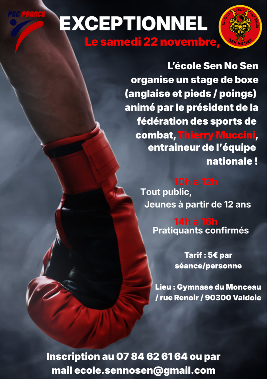 Disciplines : MARTIAL-BOXING & BOXES PIEDS-POINGS Stage dirigé par […]